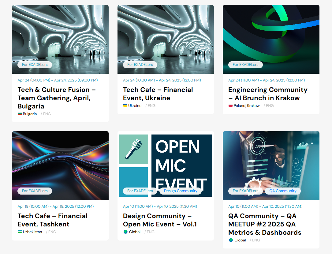 Exadel Communities are continuously growing with the support of our amazing leaders. We plan to experiment with new event formats and approaches that drive deeper engagement and innovation.